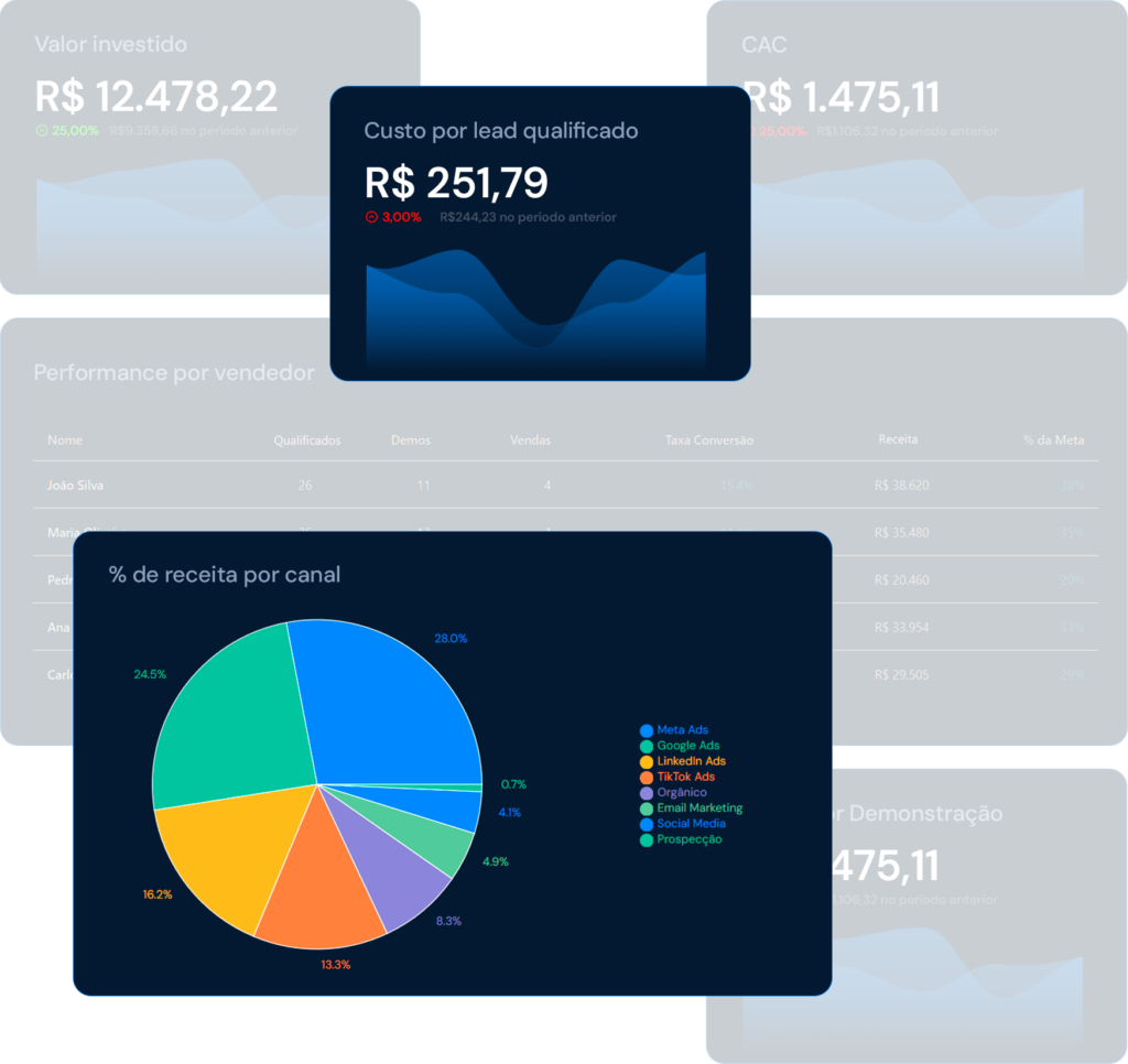 Tenha visão completa das métricas de marketing.